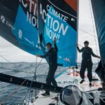 The IMOCA teams in the 2023 Ocean Race began the third leg of their race from Cape Town, South Africa, to Itajaí, Brazil, on February 26. The start of Leg 3 was chaotic with high winds and a pod of whales making an appearance that forced the race committee to reconfigure the race course. The second start had little wind which left four boats stranded behind the starting line and gave Biotherm a decent lead. But the lead was short lived as they were overtaken in light wind.