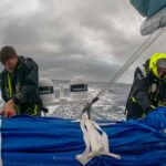 Onboard Team Malizia. Will Harris and Boris Herrmann checking the sails.
