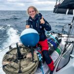 Onboard Team Malizia. Rosalin Kuiper getting the drifter buoy ready for deployment.