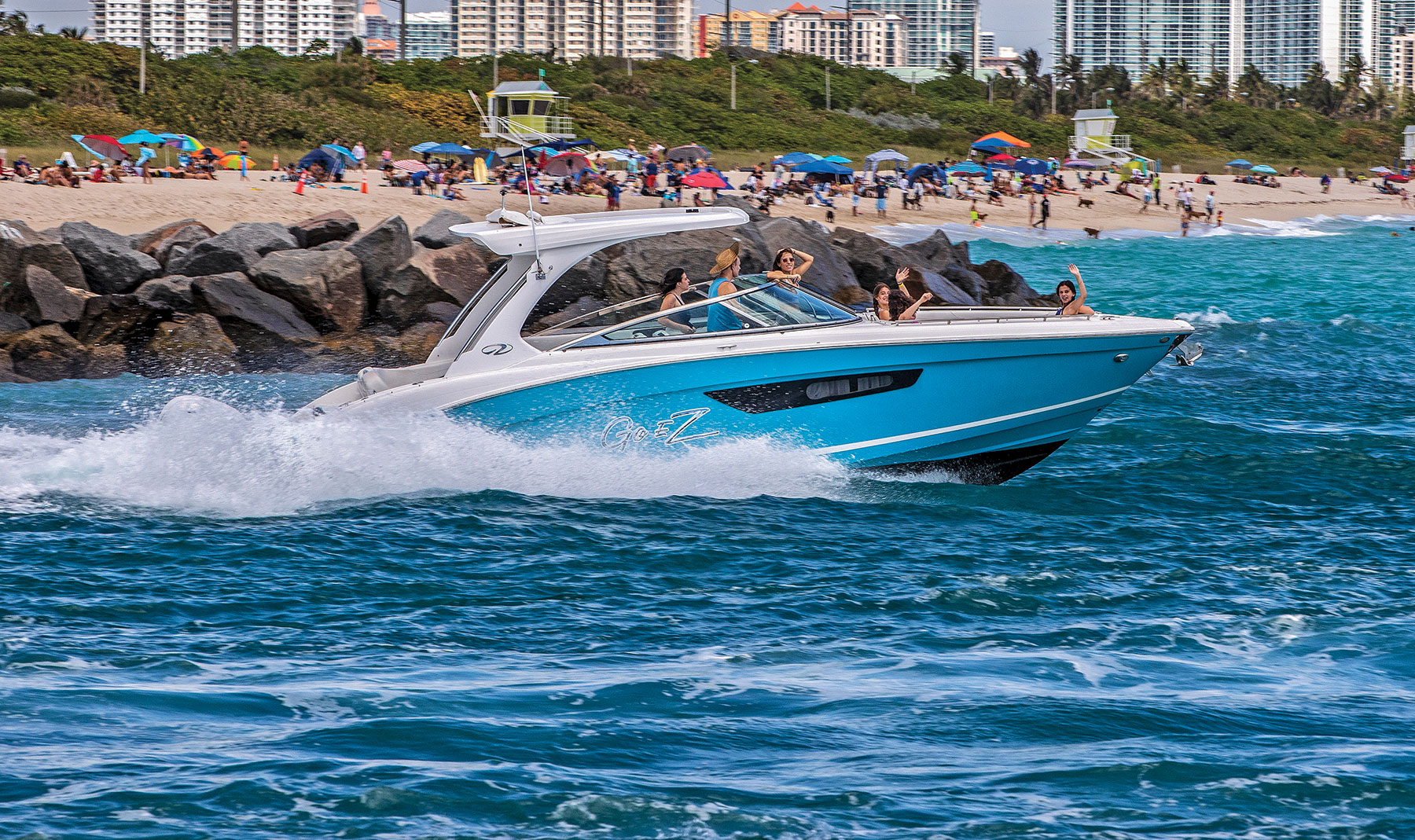 This trailerable 20-footer is based on the builder’s patented Z-Plane hull.