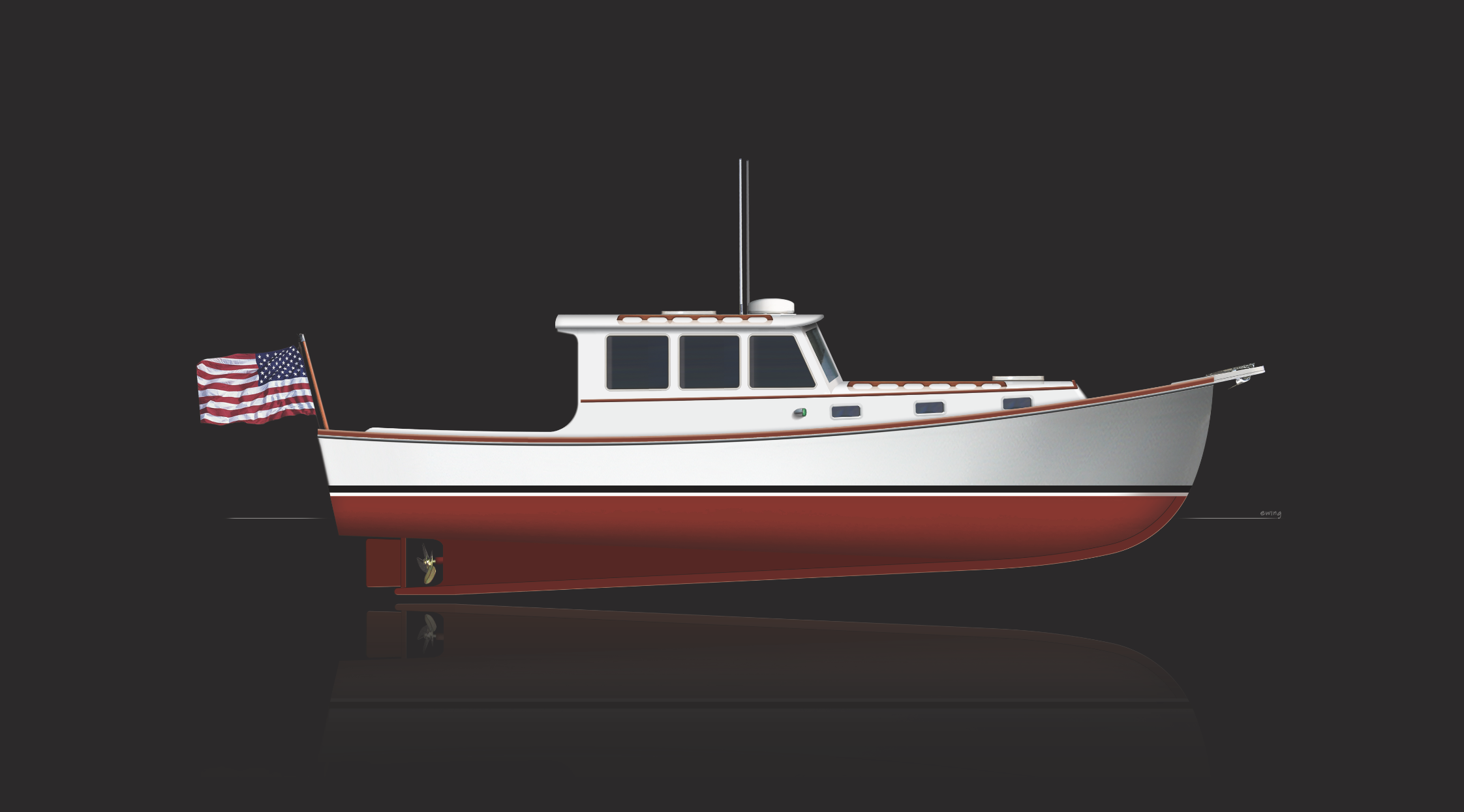 The mold of the Jarvis Newman 36 came from a mold taken off a classic wooden lobster boat