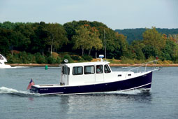 A cruising couple has it their way with a lobster yacht built in Maine and finished off in Connecticut Jim Long maneuvers past a partially