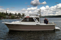 The all-season outboard-powered cruiser will be on display at this week’s boat show.
