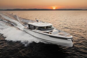 The all-season outboard-powered cruiser will be on display at this week’s boat show.