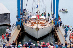 Two prominent Maine boatyards chose the same day in June to launch two very different vessels — a massive sailing yacht and a more modest