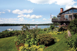 “This property is really a garden with a nice comfortable place to live,” Helen Wisdom, of Cushing, Maine, says of her camp-turned-contemporary-cottage at the mouth