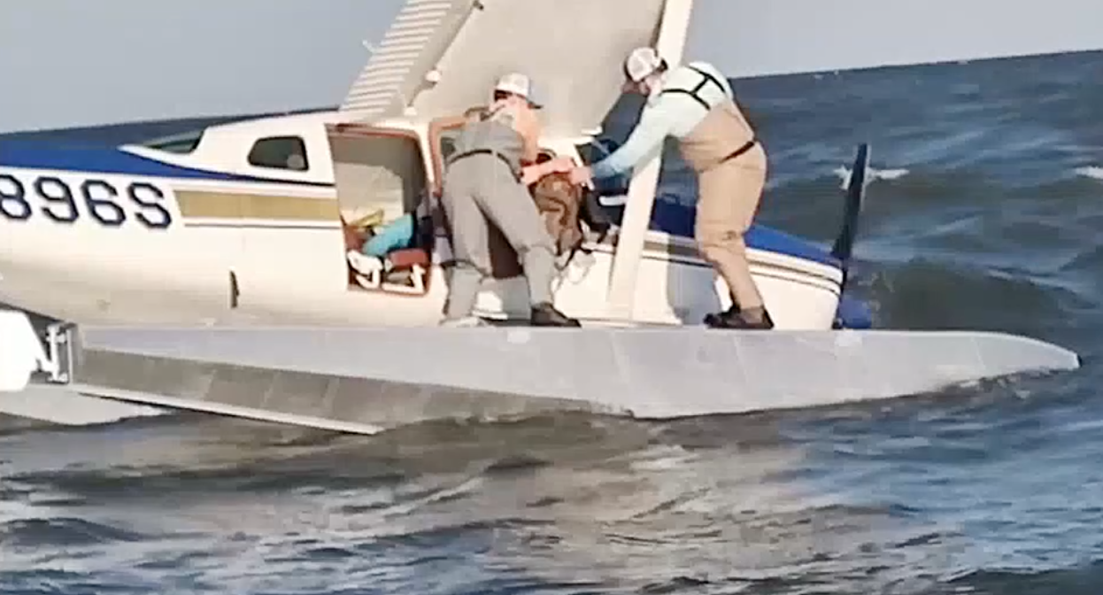 After witnessing a bad landing by a seaplane, a local fishing charter rushed to the scene to help