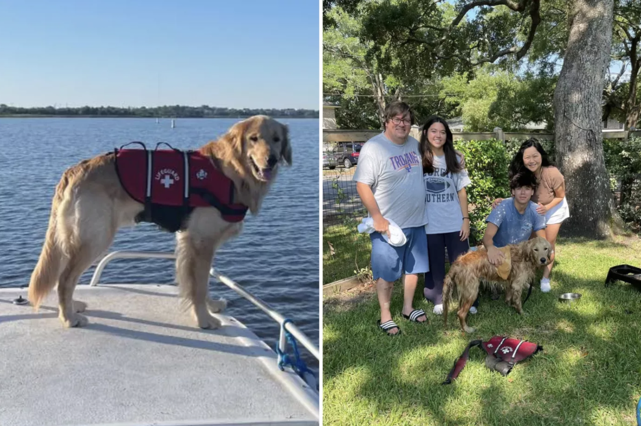 Thirty-six hours after he went overboard, a golden retriever was reunited with his family