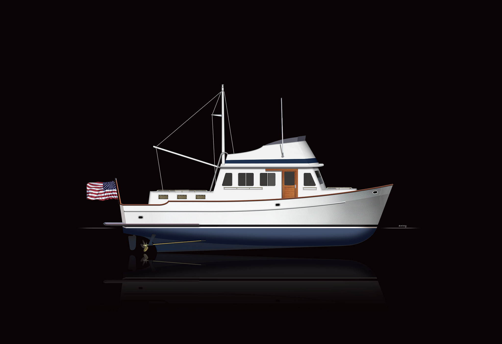 This fast trawler boasts a hull by C. Raymond Hunt Associates.
