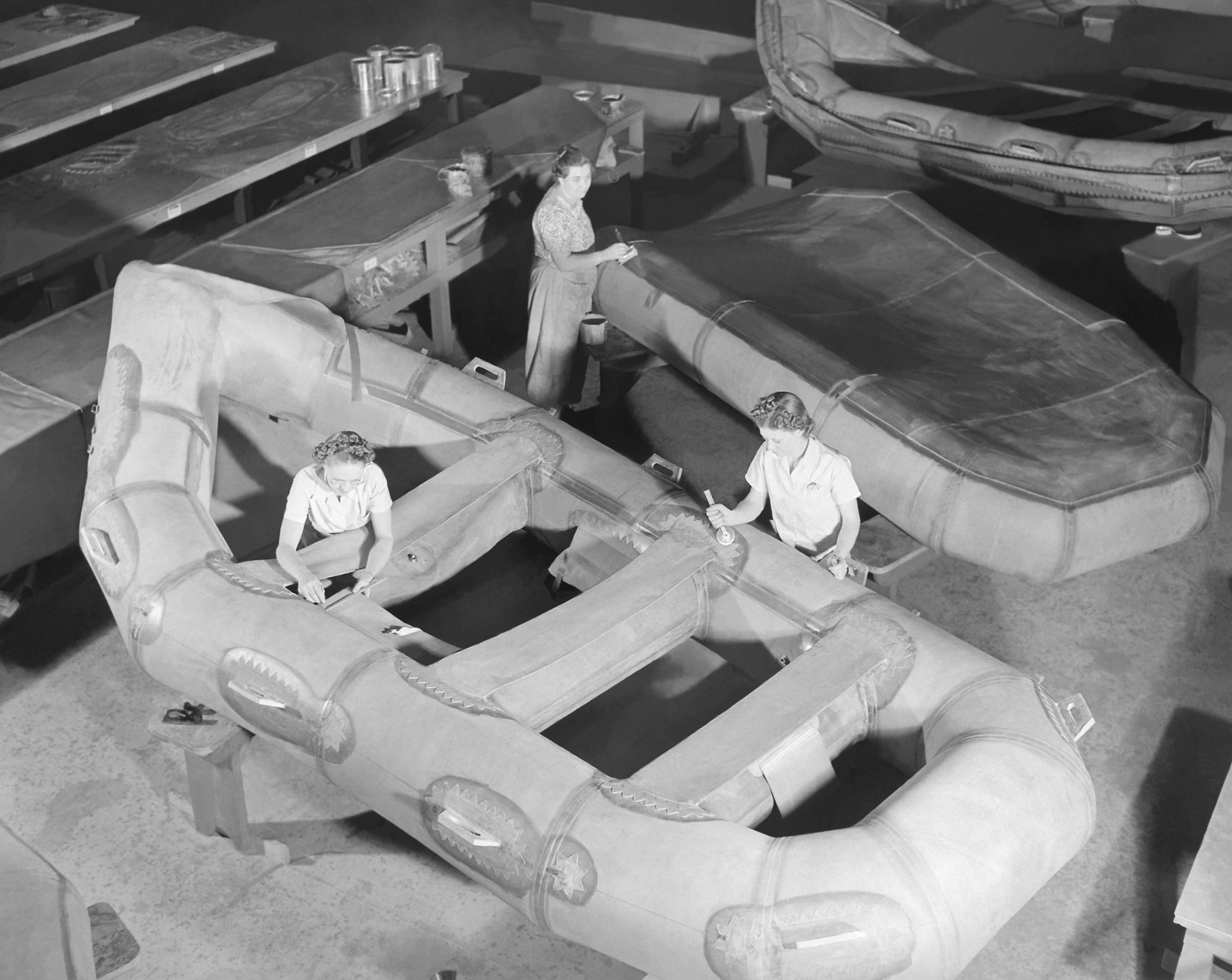During World War II, women played a key role in building inflatable rubber assault boats for soldiers on the front lines December 1941 marked a