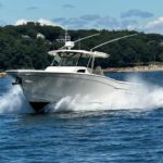 “KATY LADY” is offered by her knowledgeable original owner following several seasons of light use mostly as a platform for diving and coastal family cruising and fishing. The 37-foot center console Canyon 376 is an awesome saltwater sportfishing boat also well suited for casual family boating. Exceptional detail shines in the boat’s ergonomics, function, fit & finish, and performance. The console cabin boasts a high level of detailed comfort including head, shower, small galley and double berth. Grady’s exclusive SeaV2 ride is incomparable.