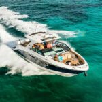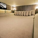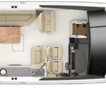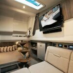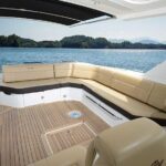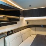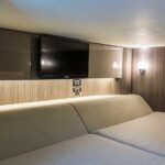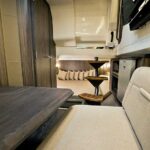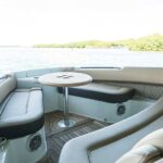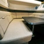 - For overnighting, premium comforts extend to the cabin via a queen-sized bed in the aft section and a forward bunk that converts to form a social gathering area.