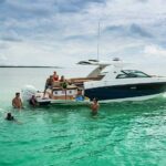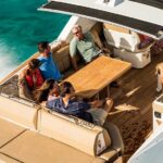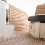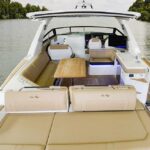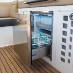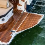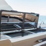- An expansive cockpit social zone has a well-appointed wet bar with refrigerator, sink and optional dual grills while the innovative swim terrace opens to extend the cockpit all the way to the water.