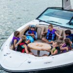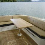 - The bow has forward touring seats with arm rests, U-shaped benches and a table.