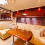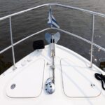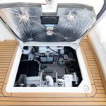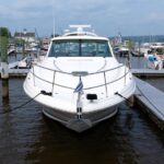 The 48’s sleek fiberglass hardtop-which shades a good part of the cockpit-includes dual power sunroofs as well as power side windows. An optional hydraulic swim platform can support a dinghy. Cruise in the low 20s with 540hp Cummins V-drive diesels 28-29 knots top. The gorgeous curves and aerodynamic profile of the 48 Sundancer are sure to attract attention.