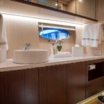 Recently delivered Burger Cruisers provide their owners with luxury accommodations in two ensuite staterooms, unobstructed views in the open salon/galley area and exceptional exterior spaces for entertaining family and friends. Powered by twin 600hp Volvo Penta D8-IPS800 engines, and incorporating Vripack’s revolutionary SlideHulldesign, this iconic yacht provides her owner a cruising speed of 26 knots and a top speed of approximately 31 knots in comfort.