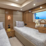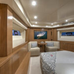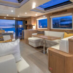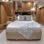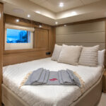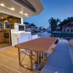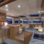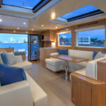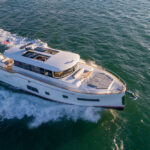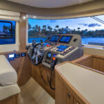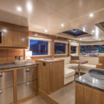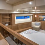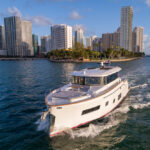 With hull and superstructure design by Germán Frers, the 58 Coupe has a contemporary plumb-bow design, modest freeboard and a fast-displacement hull that yields a range of around 850 miles at 10 knots, while capable of a top speed around 26 knots. With a four-panel door that opens almost entirely, the single-level space flows seamlessly from pilothouse to transom, including a fully shaded aft deck. Additionally, the bi-level forward owner’s cabin has private access to the foredeck lounge.